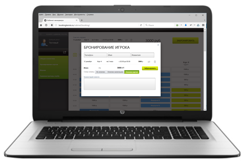 Автоматизация продаж кортов и полей (теннис, волейбол, футбол, хоккей и т.д.)